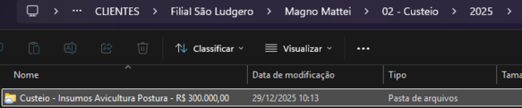 Ai sim, dentro dessa pasta, você vai separar os documentos de acordo com a checklist para o projeto do custeio. Ex: