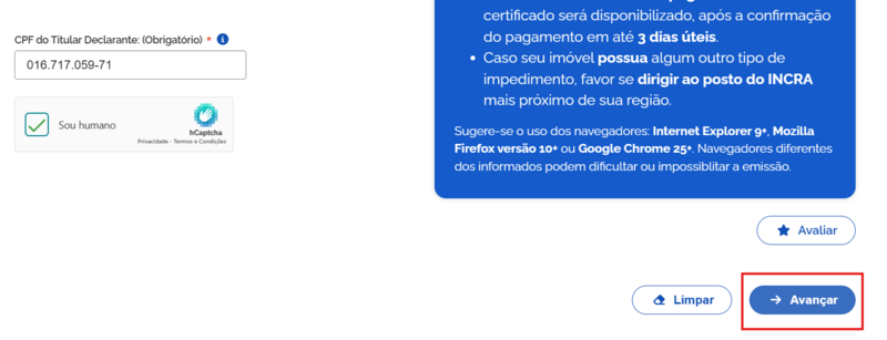 2- No site basta preencher os dados, e abaixo clicar em avançar:
