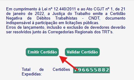 [editar | editar código-fonte]É um documento emitido pela Tribunal Superior do Trabalho (TST) que comprova que a pessoa física ou empresa não possui dívidas decorrentes de processos trabalhistas na Justiça do Trabalho.