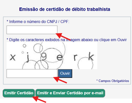 3 - Coloque o CPF e os caracteres exibidos na imagem, após isso clique em EMITIR CERTIDÃO: