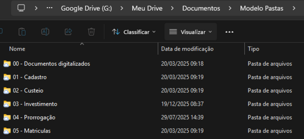 💡Google Drive → Meu Drive → Documentos → Modelo Pastas