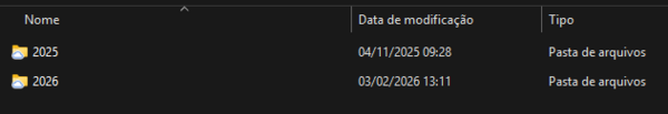 Agora, para o cadastro em si, vamos entrar na pasta cadastro, e colocar pastas dos anos que a atualização de cadastro é feita, a cada virada de ano é necessário atualizar o cadastro dos clientes:
