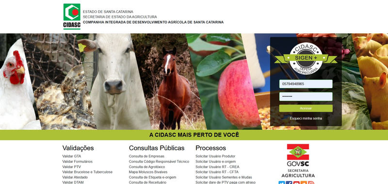 Caso o CPF esteja vinculado a um login salvo, será possível acessar normalmente. Se o acesso não funcionar ou a senha estiver incorreta, será necessário solicitar novamente os dados ao produtor.