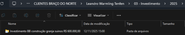 3- Com o Checklist impresso, basta preencher com os dados que já temos do produtor, dentro da pasta custeio, entre na pasta do ano que está sendo feito o projeto, se não tiver, crie uma do ano, e dentro dela entre na pasta do banco especifico que você estiver fazendo, se novamente não tiver a pasta, crie uma.