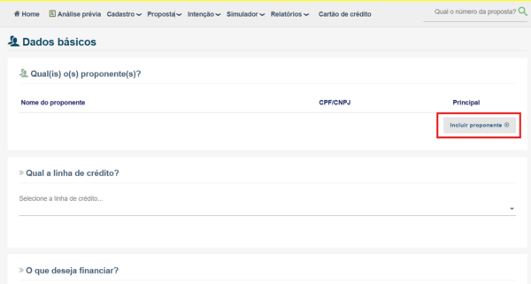 Vá em Incluir proponente: